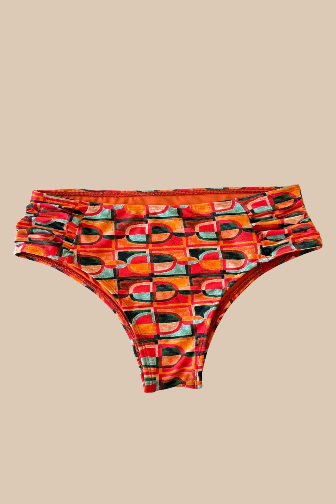 Calcinha de cintura média que possui detalhe franzido na parte frontal das laterais. Própria pra quem gosta de algo mais confortável.