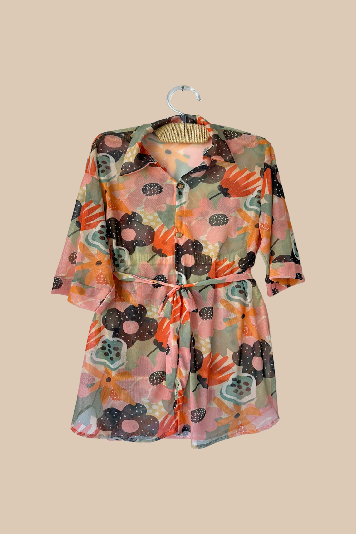 Saída fluida com faixa removível para ajuste na cintura, no mesmo material. A terceira peça indispensável pra complementar o look.