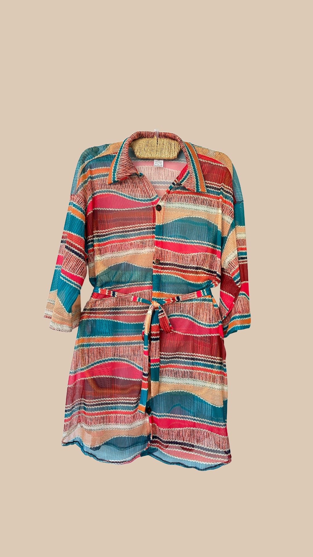 Saída fluida com faixa removível para ajuste na cintura, no mesmo material. A terceira peça indispensável pra complementar o look.