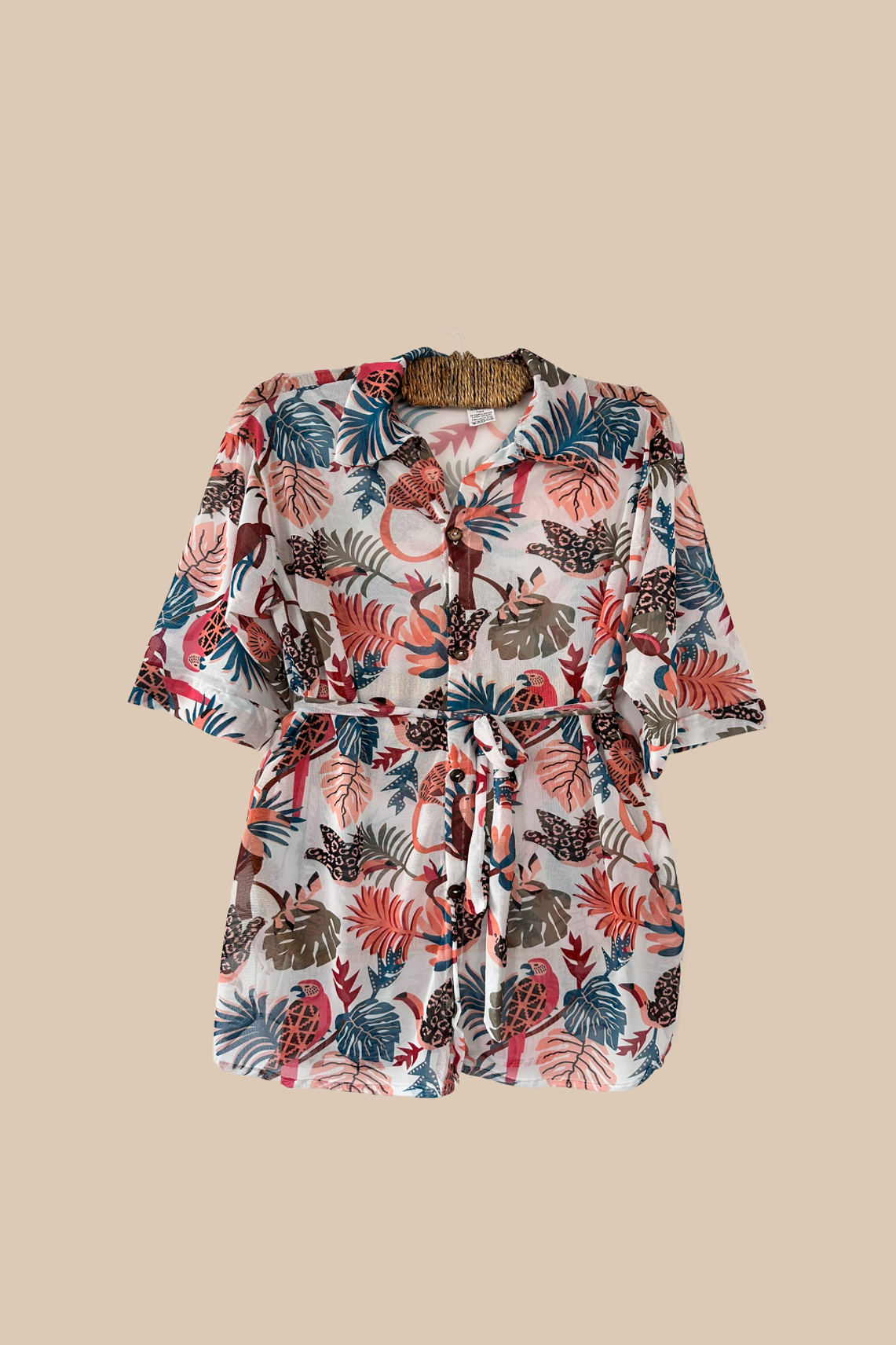 Saída fluida com faixa removível para ajuste na cintura, no mesmo material. A terceira peça indispensável pra complementar o look.