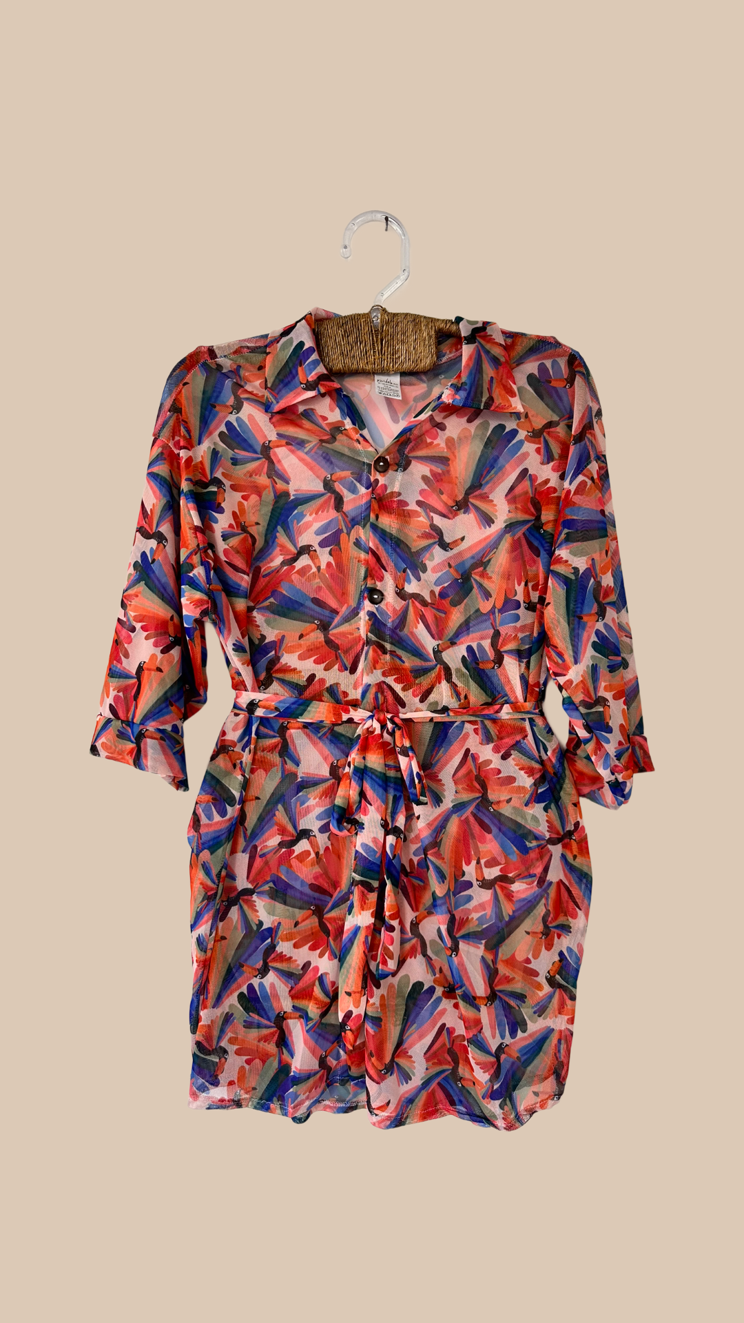 Fabricada no Tule, tecido que não amassa e tem secagem rápida.